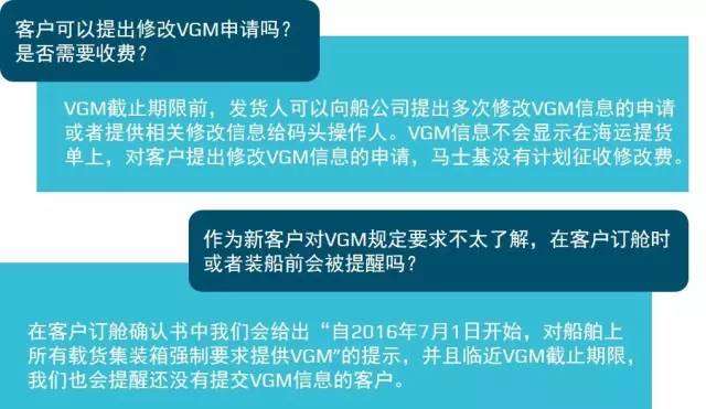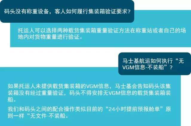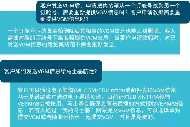 由于新規定的實施,碼頭有責任確保在最終確定裝船計劃之前擁有每個訂艙的完整VGM信息。馬士基航運也將保證最終的裝載計劃只包含這部分訂艙。